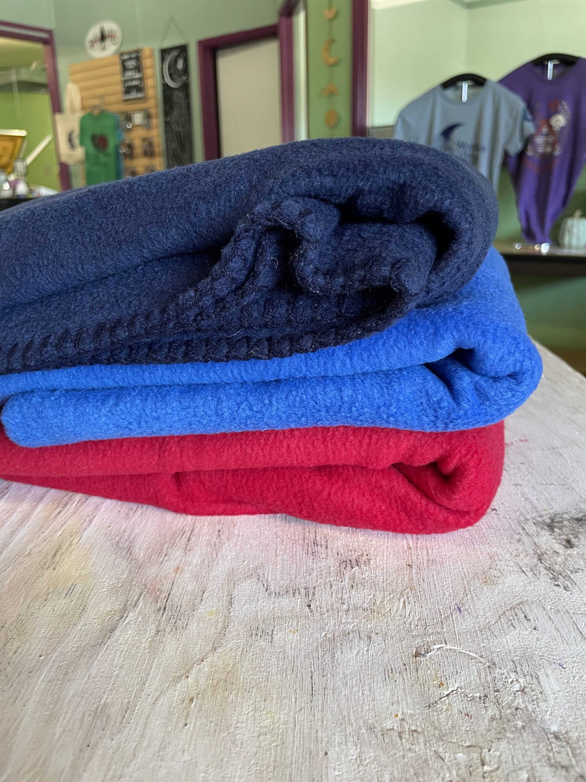 Our Cozy winter racoon design – on a cozy blanket!  This blanket is 50″x60″ (About 4ft x 5ft) and is made of 100% polar fleece.
